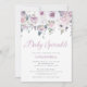 Este o bebê bonito polvilha/chá de fraldas as flores dos convites a aguarela da característica que cora, brandamente do roxo, e as brancas com abundância das folhas botânicas e da luz elegante - caligrafia roxa.