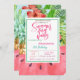 Estes convites apresentam melancia, palmeiras e abacaxi. Este convite é facilmente personalizado para o seu evento simplesmente adicionando os seus detalhes.