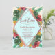 Folhas de queijo, ananás, hortelã e verde-sábio, tropicais, e elegantes folhas de queijo de aquarela, ananases, e flores de hibiscus havaianos com cortes geométricos de diamantes de rosa, convites de festas de celebração de 16 anos. Este design clássico e sofisticado é perfeito para a garota de aniversário de classe, tendências e na moda. Personalize com sua própria mensagem na frente e um monograma personalizado no verso. Todas as impressão design.