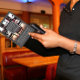 Este grande convite de abertura do restaurante elegante apresenta uma simples cinza de carvão e design branco, e inclui a fotografia do restaurante e o nome do negócio. Essa design moderna e mínima também inclui detalhes como o endereço do restaurante e informações de rsvp.