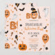 Ilustrações bonitinhas e adoráveis do Boo Halloween festas infantis, festa perfeita do Halloween em rosa esmalte pastel, com ilustrações bonitinhas com fantasmas e rosquinhas pintadas com chapéus de bruxa, vassoura, fantasma branco e fofo, abóbora esculpida, balão, aranha e morcegos. Uma ilustração adorável de Halloween.