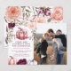 Floral e abóbora caem no convite da festa de ação de graças em roxo e pêssego. Com belas design de floral, folhagem e abóbora. Design de outono/outono ideal.