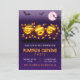 Esta Pumpkin "Spooky Halloween Pumpkin" Carving Orange & Purple convite de festas apresenta três jack o'lanterns com começos e pedaços de abóbora, uma lua de cheio num céu nebuloso com morcegos. A parte de trás do convite apresenta um padrão surpreendente divertido com teias de aranha, abóboras, morcegos e muito mais (você pode personalizar a cor de fundo). Esta design é perfeita para uma festa de Halloween. Este design serve a qualquer sexo ou idade. Você pode personalizar todos os detalhes do seu evento. Veja toda a coleção correspondente!