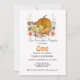 Um cartão de convite de aniversário elegante e moderno com uma abóbora laranja queimada com folhas de outono. De acordo com o texto, "nossa abóbora está virando uma."