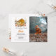 Um cartão de convite de aniversário elegante e moderno com uma abóbora laranja queimada com folhas de outono. De acordo com o texto, "nossa abóbora está virando uma."
