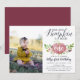 Apaixone-se por esses adoráveis convites de aniversário infantil rústicos com uma foto favorita no lado esquerdo. O design apresenta uma abóbora em aquarela rosa adornada com flores burgundy e rosa e folhagens verdes. "Nossa pequena abóbora está fazendo" aparece no topo em letras de caligrafia chic, com a idade do seu filho inscrita na abóbora. A amostra mostrada é para um primeiro aniversário. Personalize com os detalhes da sua festa de aniversário abaixo em letras azul-marinho ricas.