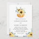Convide familiares e amigos com este convite de casamento sobre o tema botânico no outono. Apresenta abóbora aquosa com girassol amarelo, algodão e folhas de eucalipto. Personalize adicionando nomes, data, hora, local e outros detalhes do evento. Este convite de girassol rústico é perfeito para casamentos no outono ou no outono.