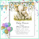 Celebre a chegada de um precioso pequeno com este charmoso convite para chás de fraldas de aquarela. Você não conseguirá resistir à adorável mamãe elefante abraçando seu bebê, abraçada em meio a uma bela mostra de flores amarelas vibrantes.