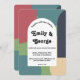 Este convite de casamento moderno é perfeito para o casal que quer fazer uma declaração na moda. O convite apresenta uma caligrafia retrô ousada em um arco branco com um fundo de abstrato vibrante e ranhura. A combinação artística do velho e do novo dá a qualquer evento um toque convidativo e único. Quer você esteja planejando uma simples reunião ou uma grande celebração, este convite vai garantir que seus convidados saibam que é uma ocasião para se lembrar.