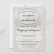 Cartões de casamento modernos e simples e minimalistas para sua ocasião especial! Apresentando uma estrutura geométrica de círculo prateado ao redor do nome da noiva e do noivo com branco suave e borda abstrata do pincel d'água da cinza em fundo de cor da cinza. Personalize seus detalhes de casamento, data, local e muito mais na frente.