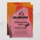 As formas de abstrato vermelho brilhante e ousado, cor-de-rosa, laranja, amarela e burgundy formam um fundo vibrante. Arcos modernos, cor-de-rosa e azul-turquesa, néon armam seus detalhes de festa de formatura. A tipografia de tendências dá-lhe uma vibração de anca. Perfeito para um formando masculino ou feminino.