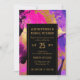 Elegante e sofisticada pintura acrílica convidada para casamento em rosa-coral quente vibrante, roxo, mauve, brilho dourado falso e paleta a preto com pinceladas de abstrato e dourado falso, moderno script de tipografia contemporâneo totalmente editável. +++++++++ O convite é adequado para todas as estações em casamentos com estilo chic urbano moderno.