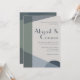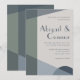 Elementos: formas geométricas de abstrato, blocos de cores, fonte sans sans sif de chic para nomes, fontes serif subindicadas para detalhes. Cores: sábio, hortelã, pistácio, verde, azul empoeirado, botânico, marinho, noite, meia-noite, cetáceos, pergaminho, cinza clara, platina. Temas: modernos, minimalistas, abstrato, limpos, alegres, legal tons, subestimados, boho, scandi, contemporâneos, industriais. Coleção: Abstrato Geométrico Marinho Sage Geométrico Tipo de Produto da Coleção de Casamentos Azuis Dusty: Convite Clássico - Vertical