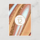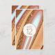 Este conjunto de design de casamento, com seu padrão abstrato de ondulações e veias fluentes de ouro reluzente, traz à mente formações rochosas atraentes e paisagens do Sudoeste. Uma paleta colorida em tons de ferrugem, e terra cotta através do céu azul acrescenta ao apelo. A placa de número da tabela de coordenação mostrada aqui tem todas as informações acima com um rótulo branco para adicionar os números da tabela. Adicione facilmente seus nomes, números e data de casamento usando o modelo fornecido. Procure ID903 para ver outras opções de cores e peças de coordenação para esta coleção de casamento única.