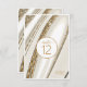 Este conjunto de design de casamento, com seu padrão abstrato de ondulações e veias fluentes de ouro reluzente, traz à mente formações rochosas atraentes e gemas cintilantes. A paleta de cores neutras em tons de champanhe a pedra acrescenta ao apelo. A placa de número da tabela de coordenação mostrada aqui tem todas as informações acima com um rótulo branco para adicionar os números da tabela. Adicione facilmente seus nomes, números e data de casamento usando o modelo fornecido. Procure ID903 para ver outras opções de cores e peças de coordenação para esta coleção de casamento única.