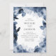 Elegantes convites para casamento floral que contêm os detalhes do seu casamento cercados por flores de abstrato d'água e folhas em tons de azul-índigo vibrante. Projetado para coordenar com a nossa coleção de casamentos de Indigo Floral Abstrato.
