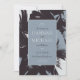 Estes convites de casamento elegantes e ousados apresentam um design floral abstrato em tons de azul empoeirado e preto.