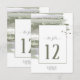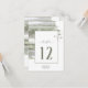 Uma pintura trava aquarela em tons cintilantes de verde-oliva com salpicos de lavanda acentua as peças desta bela suíte de casamento. A carta de número da mesa de casamento mostrada aqui também apresenta uma caligrafia manuscrita elegante e uma modelo para adicionar facilmente seus próprios nomes e data de casamento. Procure ID886 para ver outras peças e opções de cores para este conjunto.