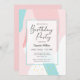 Simples e chique, este convite de aniversário na moda moderno tem um padrão pastel, rosa e azul, de abstrato, borrifado com pontos brancos e dourados. Uma face de moda escrita à mão soletra as palavras "Festa de aniversário" no estilo contemporâneo. Quer comemorando a cidade ou festejando uma casa, esta design é uma escolha feminina adorável. Personalize o texto com os detalhes do seu partido.