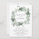 Convites elegantes de casamento com seus nomes cercados por uma coroa de eucalipto, samambaias e outros verdes, com seus detalhes de casamento mostrados abaixo. O verso do convite apresenta um sólido fundo verde escuro para um toque ousado e moderno. Parte da nossa coleção de casamento Abundant Greenery, esta design é perfeita para casais que procuram um olhar botânico inspirado na natureza para o seu dia especial.