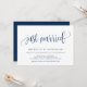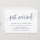 Este cartão de convite temático de design de caligrafia moderna (acaba de casar) é perfeito para a celebração/anúncio do seu casamento. Adicione seus detalhes na fonte/letreiro azul-marinho correspondente.