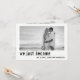 Este simples, mas elegante e minimalista anúncio de casamento e cartão de recepção do recem casados apresenta sua própria foto com um filtro Zazzle preto e branco aplicado, junto com o sentimento "Nós nos tornamos Sr. e Sra." na frente do cartão com tipografia de script com letras à mão, assim como seus nomes casados. A parte traseira dos convites apresenta a mesma foto com uma camada transparente e um filtro preto e branco, e as informações de recepção de casamento na parte traseira. Fácil de personalizar com sua própria foto e texto.