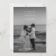 Compartilhe suas notícias de elopemento com um anúncio de casamento clássico moderno, excelente para fotos em preto e branco, mas também qualquer cor, pois há um gradiente gradual preto no fundo e no topo do cartão. Apresentando fontes brancas de serifa centradas em sua foto, compartilhe as notícias de suas núpcias com sua família e amigos e comemore com uma festa de celebração de casamento poste.