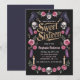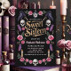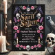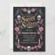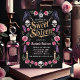 Convide seus convidados para uma celebração de Sweet Sixteen assustadoramente bela com este convite inspirado na academia sombria. O design gótico apresenta tipografia dourada impressionante contra um fundo preto profundo, acentuado com chaves antigas e corvos misteriosos. Este convite único define o clima perfeito para uma noite memorável e encantadora.