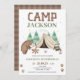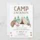 O Camp de Urso Marrom Bonito Considerou o primeiro aniversario de Camping no primeiro convite de aniversário com uma tenda, urso, fogo no acampamento e muito mais. Ideal para acampar a primeira festa de aniversário de um bebê.