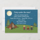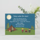 Um convite temático de acampamento com a cena de acampamento do quintal que caracteriza meninos em uma fogueira e em uma barraca sob as estrelas e a Lua cheia. (algum graphics©Robin Sampson)