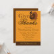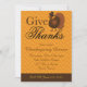 Este convite para o janto de Ação de Graças apresenta um peru sobre um fundo de chevron de orangessia de outono e texto personalizável.