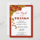 Celebração de Ação de Graças, Coma, Beba e Dê Obrigados. Convite com lindas folhas coloridas de outono para convidar todos os seus amigos e família para uma festa de Ação de Graças de excelente. Você pode personalizar a tipografia para alterar seu nome, datas, endereço e outras informações. É uma maneira perfeita de começar a reunião da família e amigos de Ação de Graças. design de excelente de de Designs TLS.