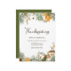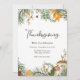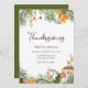 Convite Jante russo e simples de Ação de Graças, com um simples arranjo florestal de outono no topo e no fundo do convite com flores silvestres, cogumelo-do-mato, folhas de pinheiros, pinecone, folhas de outono e abelha buzinada. Detalhes do convite de Ação de Graças personalizáveis.