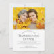 Um convite de Ação de Graças com texto de cinza em fundo branco. A foto é uma foto de modelo e deve ser trocada por você. Basta adicionar sua foto e informações, adicionar este convite ao seu carrinho e depois aproveitar o Dia de Ação de Graças com seus amigos e família. Design de Natal do Convite para Ação de Graças de Foto Moderna | Melissa Patton - Designer