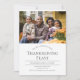 Um convite de Ação de Graças para fotos de feriado com texto de cinza em fundo branco. A foto é uma foto de modelo e deve ser trocada por você. Basta adicionar sua foto e informações, adicionar este convite ao seu carrinho e depois aproveitar o Dia de Ação de Graças com seus amigos e família. Banquete de Foto Moderna de Ação de Graças de Convite Design de Natal | Melissa Patton - Designer