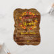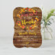 janto de Ação de Graças Convite com uma bela coroa de folhas de outono sobre o fundo da madeira rustica. Fácil de personalizar com opções personalizadas.