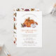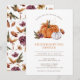 Convite para Jantar de Ação de Graças das Abóboras com Amigos. Este convite para jantar de outono com abóboras apresenta belas abóboras laranja queimado em aquarela e flores de outono brancas com um padrão floral correspondente no verso. Personalize facilmente de Jantar de Amigos para Festa de Ação de Graças.