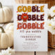 Este convite moderno de Ação de Graças apresenta o ditado "Gobble Gobble Gobble Till You Wobble" com o mais bonito peru, colocado sobre um simples fundo branco. É a maneira perfeita de convidar seus amigos para uma celebração divertida e casual de Ação de Graças.