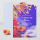 Um convite bonito para o janto de Ação de Graças com o meu design de uma colorida árvore cartográfica com folhas laranja, vermelha e amarela contra um céu azul profundo. Personalize o texto para suas preferências!