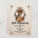 Gótico Ação de Graças com uma vitoriana assustadora com folhas de outono e abóboras.