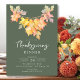 Este elegante convite para a janta de Ação de Graças apresenta uma bela cor aquática, a planície foliar do outono, colocada sobre um fundo verde. O convite é simples e na moda, com data, hora e local do janto em uma fonte saborosa. As folhas de aquarelas do outono adicionam um toque de chorona e diversão, e o design geral é perfeito para celebrar o feriado de Ação de Graças com seus entes queridos.