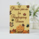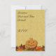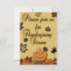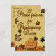 Saudações de Ação de Graças, ilustração com folhas de outono e uma abóbora.