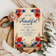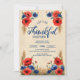 Celebrar o Dia de Ação de Graças em estilo com este design de janto rústico com papoilas vermelhas vibrantes, flores azuis e trigo ouro em um fundo texturizado. Perfeito para hospedar uma reunião de férias quente e convidativa com familiares e amigos.