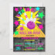 Passe para cima para uma festa de aniversário de boliche com néon, cores giras definidas em um fundo texturizado preto. Personalize com as informações do seu partido e você está pronto para ir.