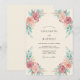 Este design apresenta um arranjo floral suave de rosa e blush com folhagem delicada de tonalidade azul-esverdeada. As flores artísticas em aquarela evocam uma atmosfera romântica e aérea, perfeita para uma reunião matrimonial serena.