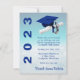 Convite à graduação, com um fundo 'Acima das Nuvens', renderizado em chaleiras moles. O design é um tema de Boné e Diploma, e "Ano de Classe" em Azul Real e Branco. A parte traseira do convite inclui o mesmo plano de fundo e o mesmo nome do formando. Pode ser personalizado com suas próprias imagens, trabalho de arte, etc.