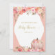 Aproveite este elegante, floral de outono, jogo de chá de fraldas de menina, conselho para a mamãe ser. Luzes de cordas na frente com abóbora pequena e flores sob abóbora. Pinks, corais e florais amarelos com fundo rosa pincelado. Modelos fornecidas atrás.