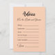 Apresentando "Advice For the Bride and Groom", um jogo de chá de panela sensato e significativo, projetado para criar uma bela coleção de sabedoria e amor de familiares, amigos e entes queridos. Ao contrário dos jogos típicos, esta atividade refletida fornece uma plataforma segura e não confrontativa para os hóspedes oferecerem os seus conselhos e desejos sinceros ao casal que se casará em breve. Com a sua bonito letra preta, as palavras "Conselho para a noiva e o noivo" destacam-se graciosamente contra um fundo de cor damasco, acrescentando um toque de elegância a qualquer celebração. A versatilidade do jogo permite escolher entre placas impressas profissionalmente ou a opção de comprar a versão digital e o impressão, quantas cópias forem necessárias, atendendo às suas preferências e conveniência. Quer seja usado em chás de panela, chás de casamento, ou até mesmo no próprio dia do casamento, "Conselhos para a Noiva e o Cavalo" torna-se um bem-estar precioso, encapsulando o amor e o apoio dos mais próximos do casal. Cada cartão contém espaços designados para os hóspedes expressarem seus conselhos sob diferentes títulos: "Sempre", "Às vezes" e "Nunca" permitem um espectro de ideias para guiar o casal ao longo de sua jornada. A seção "Não se esqueça" serve como um lembrete gentil de conselhos essenciais que os hóspedes querem que o casal os carregar. A seção "Eu Desejo a Ambos", sincera, torna-se uma coleção de bençãos, representando as sinceras esperanças e sonhos para o futuro do casal juntos. Na parte inferior de cada carta, você encontrará a palavra "Amor", convidando convidados a assinar seus nomes e adicionar um toque pessoal de afeto. À medida que a noiva e o noivo colecionam estas cartas de coração, terão uma recordação de precioso a valorizar não só no presente, mas nos próximos anos. Ler através do conselho e dos desejos dos entes queridos tornar-se-á, sem dúvida, uma tradição acalentada, lembrando o casal do amor e do apoio por que se encontram rodeados no seu dia especial. "Advice For the Bride and Groom" transcende o típico jogo de chá de panela, oferecendo uma oportunidade para conexões genuínas e memórias duradouras. Aproveite a beleza de compartilhar amor e sabedoria com este jogo, fazer-o uma parte essencial de suas celebrações, e deixe-o se tornar um tesouro estimado na jornada casal do amor e da união.