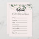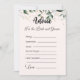 Apresentando o "Advice For the Bride and Groom", um jogo de chá de panela sensato e significativo, projetado para criar um espaço seguro e de apoio para familiares, amigos e entes queridos, para oferecer seus incalculáveis conselhos e desejos ao casal a ser casado. Este jogo extraordinário vai além do mero entretenimento, proporcionando uma oportunidade comovente para os convidados dividirem sua sabedoria e amor para o par feliz. Independentemente de serem impressos profissionalmente ou impressos com cuidado em casa, estes cartões refinados contêm a frase "Conselhos para a noiva e noiva" em uma fonte preta graciosa, definindo o tom para uma experiência verdadeiramente especial. O fundo de cor creme suave serve como uma canvas de calor e elegância, simbolizando a pureza e a alegria do sindicato dos casais. Adorado com delicadas folhas brancas e verdes e vinhas no topo, esse elemento design representa o crescimento e a natureza eterna de seu amor. Ele captura lindamente a essência de sua relação florescente e a promessa de um futuro cheio de sonhos e aspirações compartilhados. Cada cartão fornece cuidadosamente seções designadas para os hóspedes partilharem as suas ideias em títulos como "Sempre", "Às vezes", "Nunca", "Não te esqueças" e "Desejo a ambos". Esse formato estruturado garante que os convidados possam expressar seus conselhos e desejos de forma cuidadosa e sem confronto, permitindo que o casal aprecie essas mensagens sentidas não apenas durante o chá de panela, mas também ao longo de sua vida em conjunto. Na parte inferior de cada carta, a palavra "Amor" convida calorosamente os convidados a deixar as suas assinaturas, transformando cada carta numa merenda carinhosa cheia de palavras afetuosas dos seus queridos convidados. "Conselhos para a noiva e o noivo" serve como uma adição versátil e significativa a qualquer chá de panela, chá de casamento ou celebração do dia do casamento. Ele encarna o amor e o apoio da família e dos amigos enquanto eles se unem atrás do casal, oferecendo sua orientação para ajudar a cultivar uma união resiliente e duradoura. Profissionalmente impressas ou carinhosamente impressas em casa, essas cartas se tornam fichas tesouradas da jornada do casal, servindo como lembretes sinceros do amor e sabedoria inabalável que receberam de seus entes queridos. "Conselho para a Noiva e o Crescimento" imita um impacto duradouro, tornando-se uma lembrança acalentada que simboliza o início alegre de uma bela vida juntos.