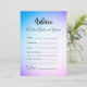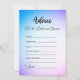 Apresentando "Advice For the Bride and Groom", um jogo de chá de panela emocionado e tocante que vai além do mero entretenimento. Este jogo oferece um espaço seguro e sem confronto para a família, os amigos e os entes queridos enviarem os seus inestimáveis conselhos e desejos sinceros para o casal a ser casado. À medida que embarcam em sua jornada de amor e comprometimento, esse jogo permite aos hóspedes deixar uma impressão duradoura de amor e apoio aos recém-casados. As cartas, que contêm a graciosa frase "Conselhos para a noiva e noiva" em uma fonte bonito de script preto, definem o tom para uma experiência significativa e sentimental. Contra um espantoso fundo azul e roxo ombre, simbolizando a mistura contínua de duas almas, os convidados sentir-se-ão inspirados a partilhar a sua sabedoria e os seus desejos. Dentro de cada placa, seções dedicadas rotuladas "Sempre", "Às vezes" e "Nunca" fornecem a estrutura perfeita para os hóspedes partilharem os seus conselhos sinceros com o casal. A seção "Não se Esqueça" incentiva os convidados a deixar para trás suas ideias mais queridas e profundas. Na parte inferior de cada cartão, a palavra "Amor" convida calorosamente os hóspedes a assinarem os seus nomes, transformando estas cartas em guardas tesouros que o casal pode revisitar várias vezes. Este belo jogo pode ser impresso profissionalmente para uma qualidade excepcional ou impresso em casa para um toque pessoal, fazer-o como uma adição agradável a chás de panela, chás de casamento ou celebrações de casamento. "Advice For the Bride and Groom" assegura que os entes queridos casais tenham um lugar especial para expressar seu amor, apoio e orientação de uma forma genuína e sincera. O fundo ombre azul e roxo encantador, junto com a elegante letra da escrita, cria uma experiência cativante e emocionalmente comovente que será apreciada pelo casal ao longo de sua jornada de amor em conjunto.